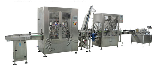 全自動油類灌裝生產線由供瓶機或理瓶機、食用油定量灌裝機、自動上蓋旋蓋機、不干膠貼標機等設備組合成生產聯動線。適用于1-6升桶裝液體的自動定量灌裝生產。食用油定量灌裝流水線采用直線式上空桶,大大節省了上桶走桶的時間,灌裝速度快,計量精確,適合大型食用油工廠灌裝速度要求比較大的場合使用。